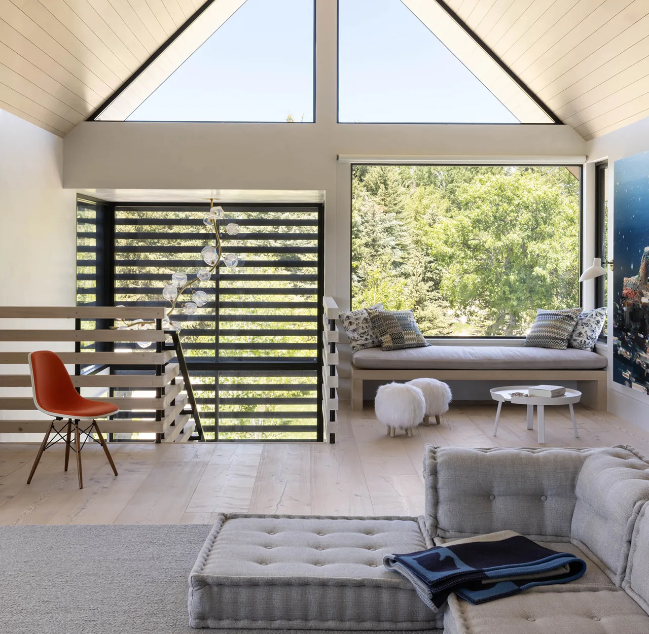 Clean lines and curated collections create a calm, art-forward sanctuary.