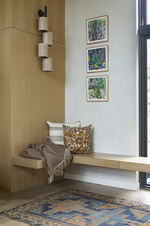 With the goal of embracing the narrow site while sensitively addressing budget requirements, an efficient approach was taken in regard to layout, size and details. The on-grade design was predicated upon the vision of allowing open, high-ceilinged interactive spaces for family gatherings while capturing natural sunlight and the predominant river view.