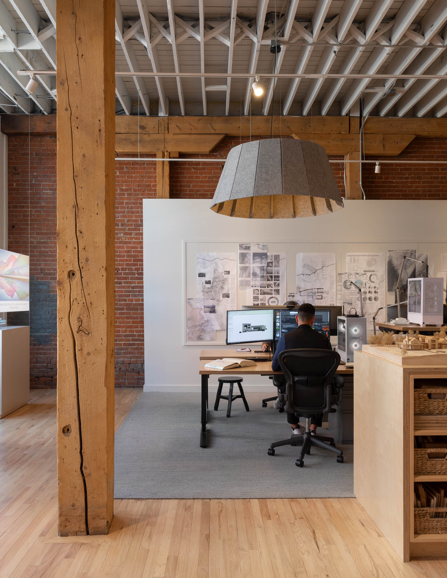 Together with the lower storefront level, which features open studio space, private offices, and the Creative Lab, 1830 Blake offers an inspiring contemporary workplace with biophilic and ergonomic features for our team while reflecting, engaging, and supporting the surrounding community.