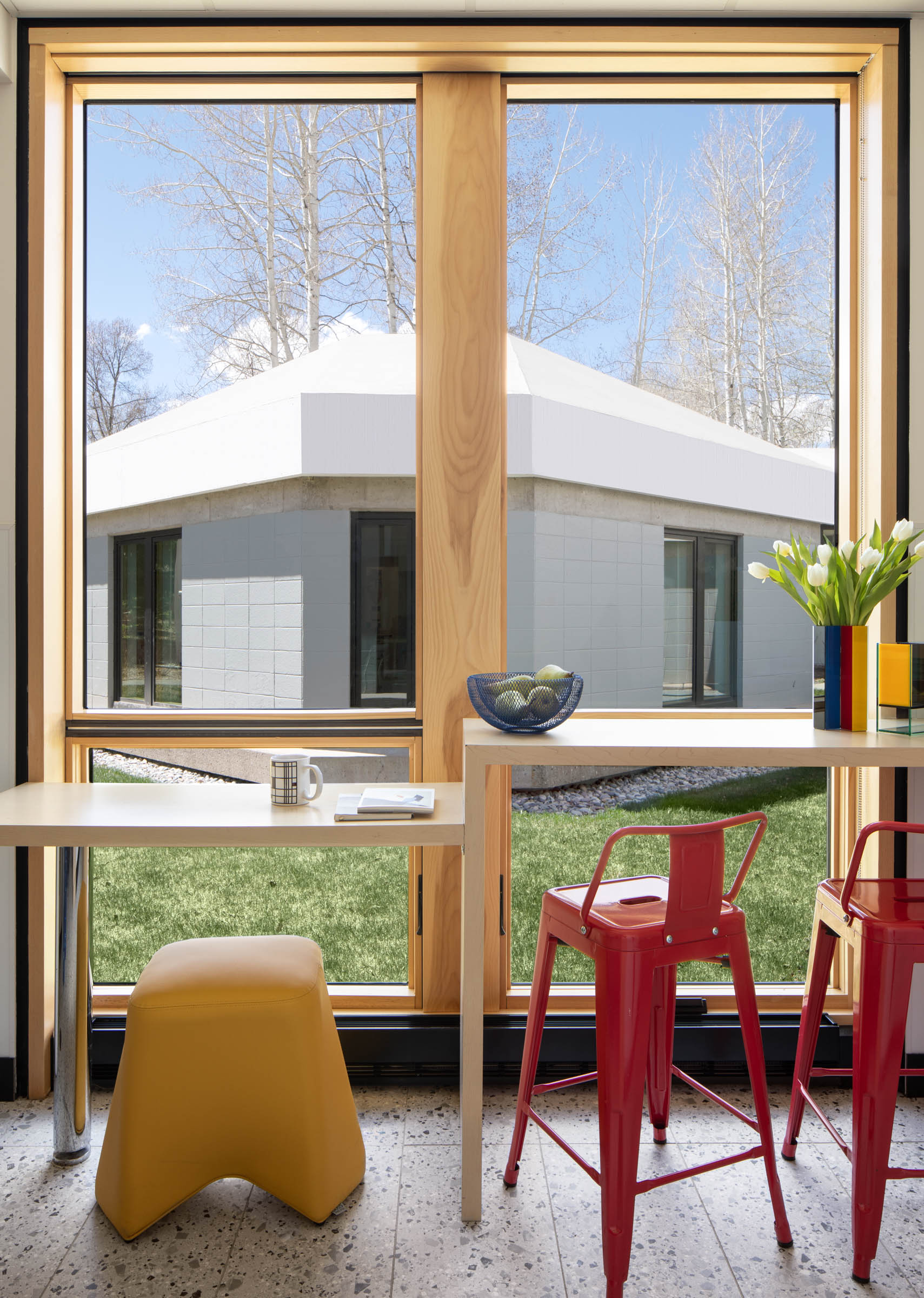 The rehabilitation of the Boettcher Building design goals began with seeking Landmark Designation to the Aspen Modern Inventory of historic structures. With this designation in mind, the team developed the primary design goal: to honor and respect the legacy of Herbert Bayer with a thoughtful restoration of the exterior and creative renovation of the interior to guide the building through the next four decades, with an emphasis on flexibility and innovation. Crucial to the entire work, the existing open-air central courtyard would need to be enclosed to provide greater year-round functionality and comfort.