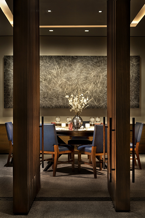 A fresh, forward thinking aesthetic was utilized to rebrand the highly lauded restaurant in The Little Nell as Element 47. Sleek, modern architecture designed to complement sophisticated culinary and wine programs was warmed by wood accent screens, upholstered banquettes, new lighting systems, and acoustical wall and ceiling panel treatments.