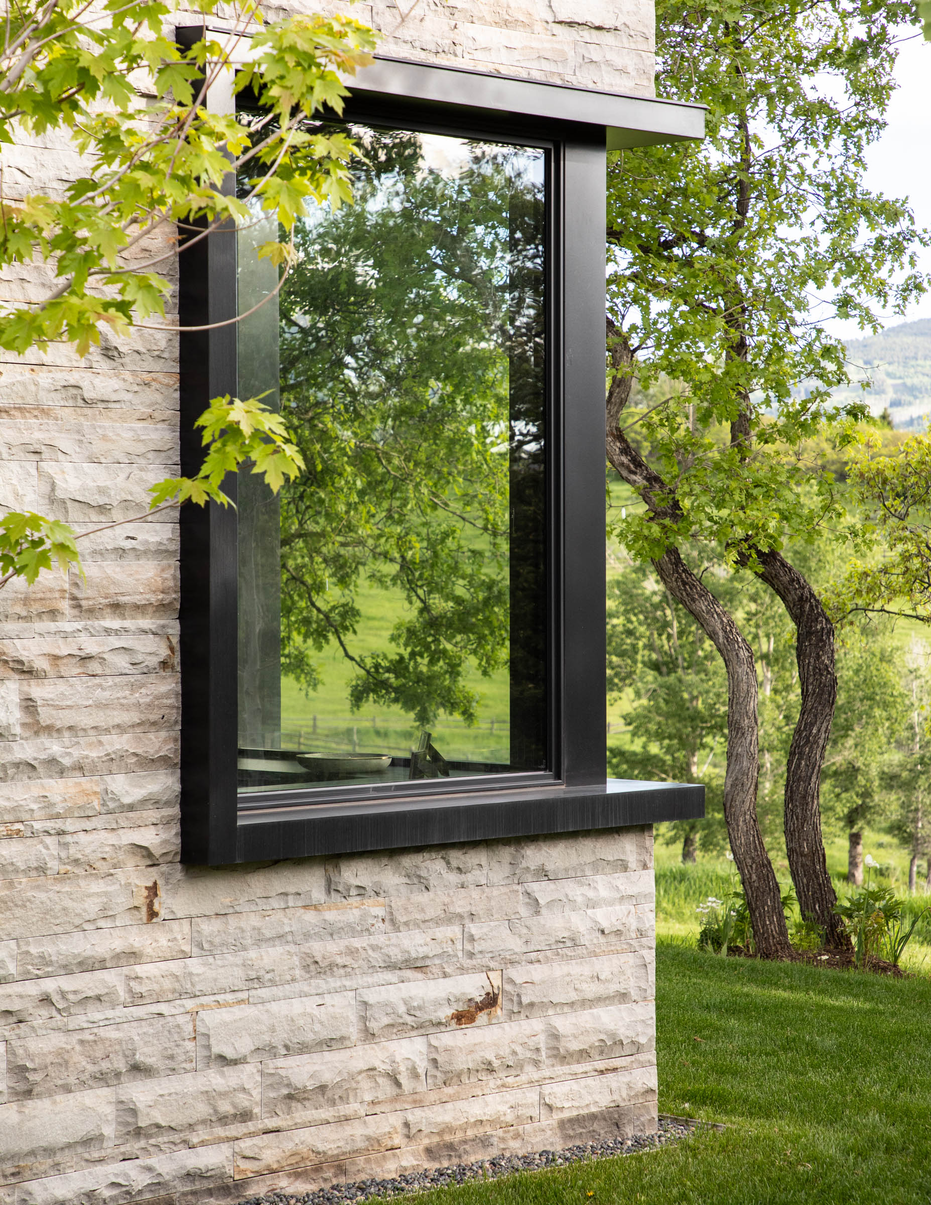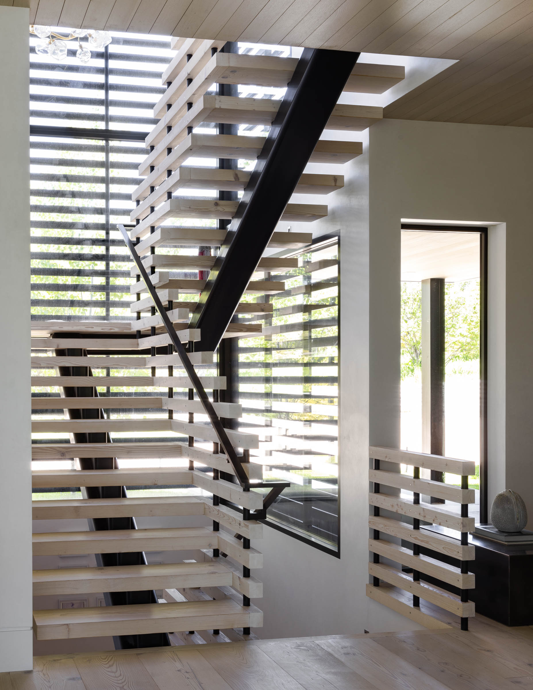 A separate greenhouse, designed for a year-round edible garden and to provide a farm-to-table learning opportunity for the family, offers an additional layer of experience. The greenhouse acts as a viewing machine, offering a different, no less dynamic perspective on the meadow, mountains, and the great western sky.