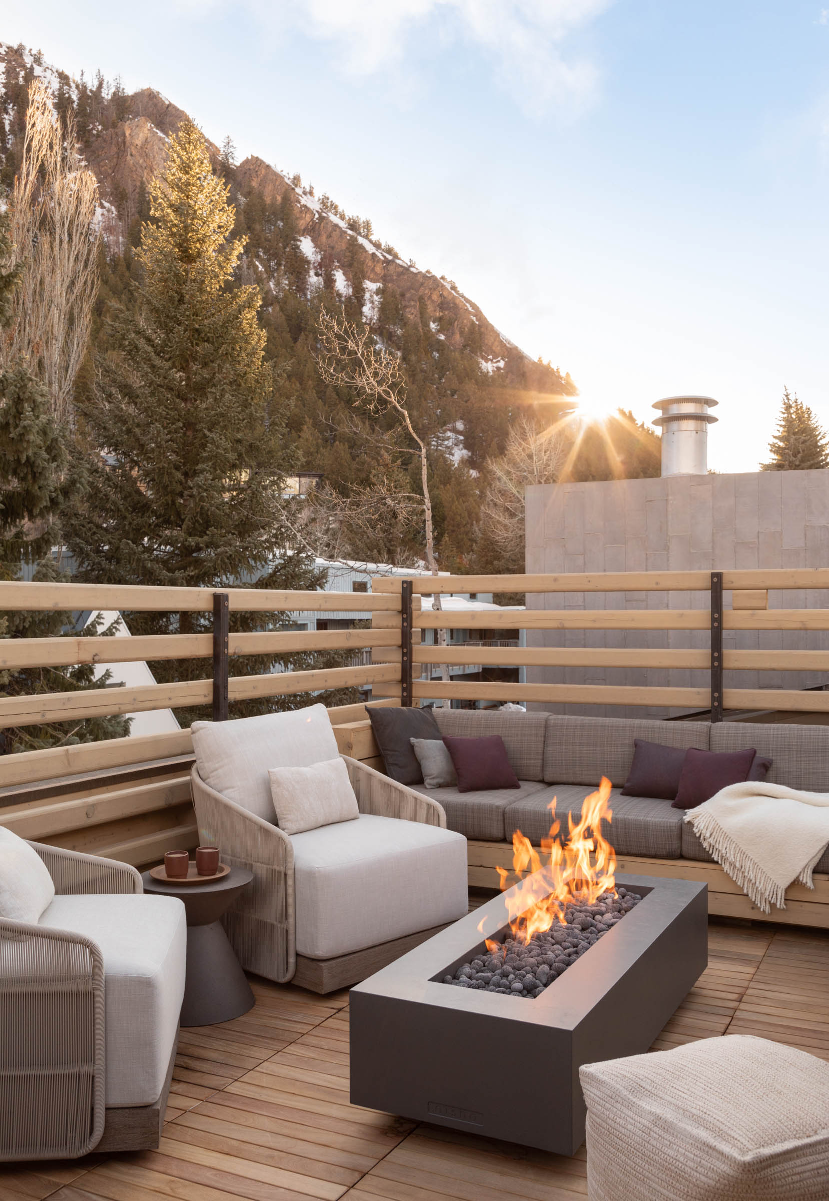 Inside, the basement features a guest suite, bunkroom, media room and a gym that includes an infrared sauna. The upper level features the primary living spaces with kitchen, living, covered alfresco dining and the main bedroom suite. A rooftop deck with 360-degree mountain views encourages a physical and emotional connection to a singular place and time.