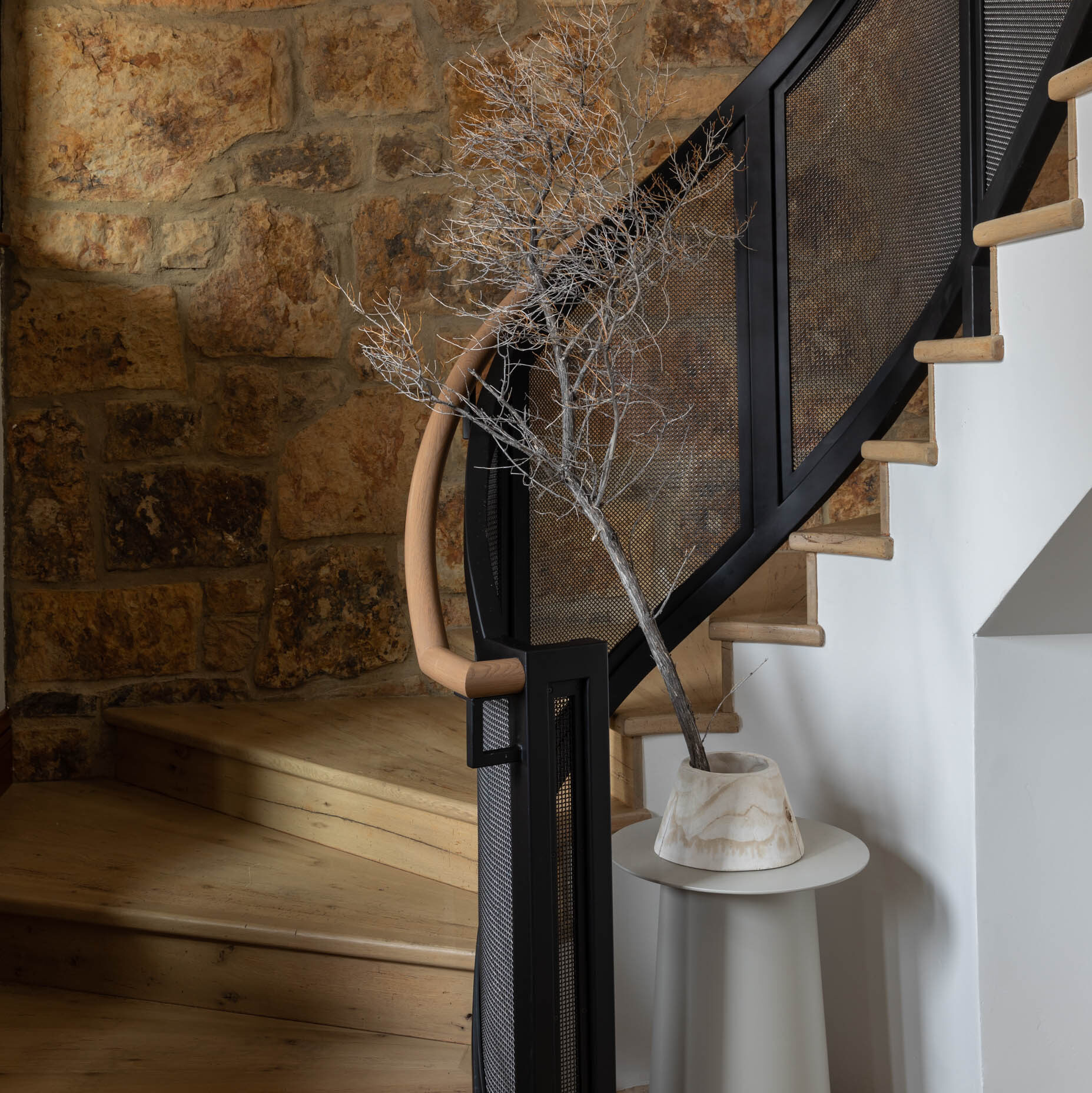 Throughout the home, special attention was given to existing woodwork. A lightening of the overall palette included bleaching the original floors and ceilings to enhance texture. The introduction of lighter oak in certain areas purposefully emphasized the juxtaposition of old and new.