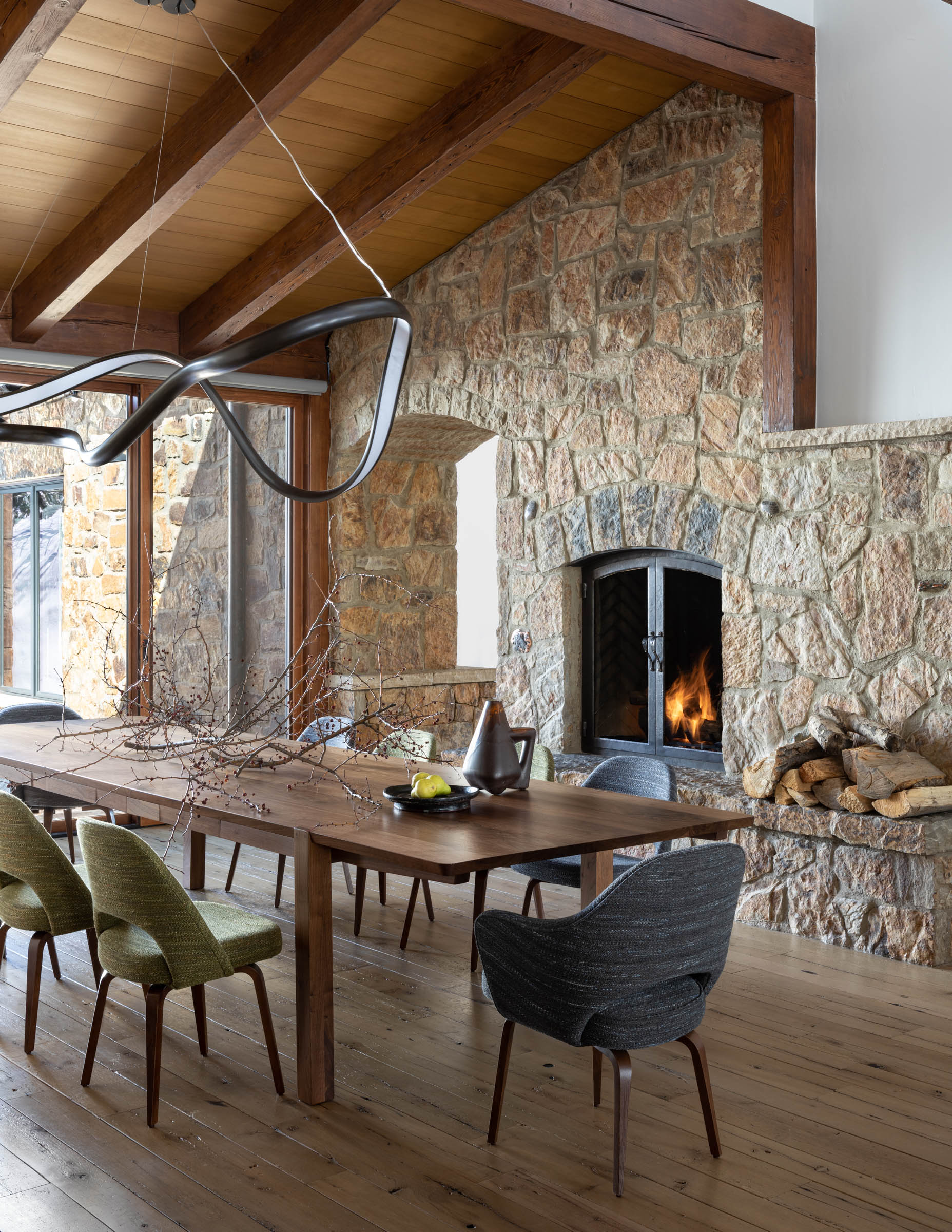 On the exterior, edits were made to unnecessary architectural details and overly prominent window mullions, and new, purposefully positioned glazing in the living and dining rooms, kitchen, and guest bedroom drew the experience of the house outward to the majesties of Aspen. Yet the primary challenge lay in the overbuilt interior, with rooms that didn’t communicate and structural elements that interfered with light, views, and flow. The residence lacked the permeability that is R+B’s specialty, and we were intrigued by the prospect of releasing its potential.