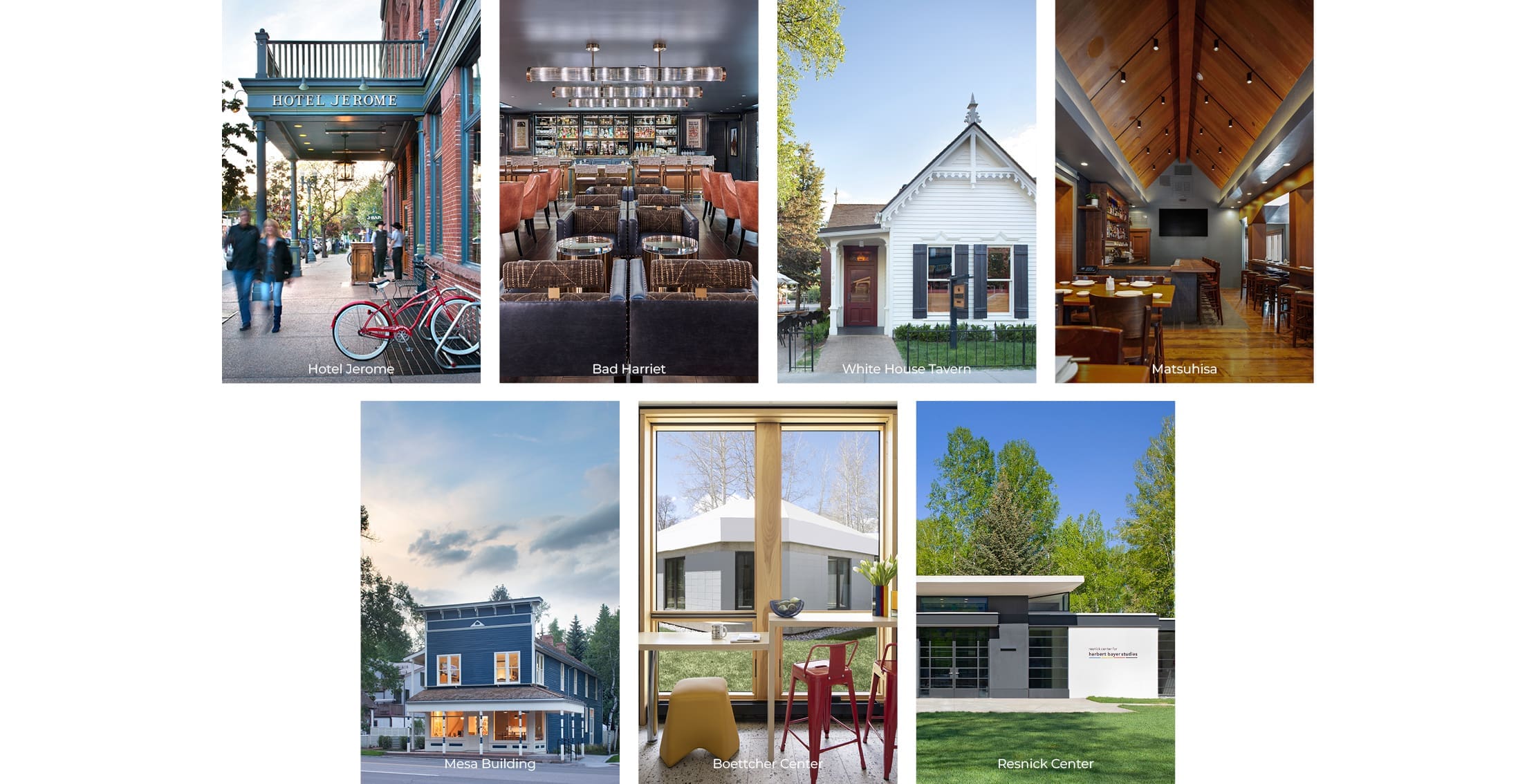Among the projects highlighted are R+B’s long-standing contributions to the Hotel Jerome, including the reimagining of tits public interiors and the transformation of the former Aspen Times building into the intimate cocktail lounge Bad Harriet. The firm’s imprint can also be felt throughout downtown Aspen in hospitality spaces such as White House Tavern and Matsuhisa, where material warmth, thoughtful detailing, and a strong sense of place shape the guest experience.